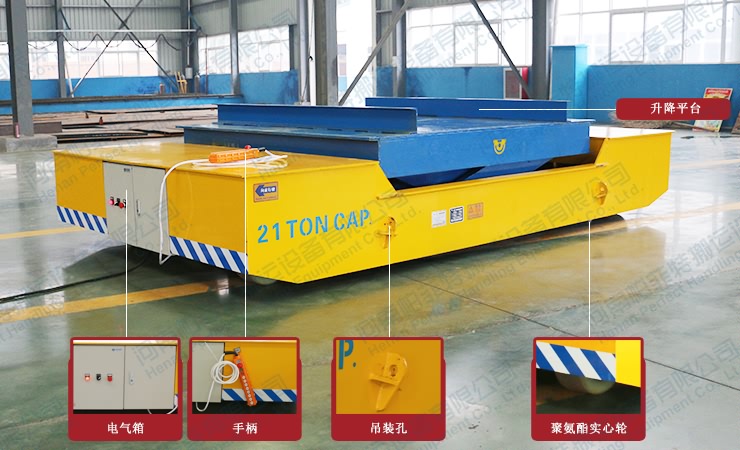 - 我們需要根據凸點的大小,車的運行距離等來確定是夠可以選擇該類型的車。我們的無軌轉運車有地面不平整調節裝置,可以根據地面的情況進行調節,保證臺面的平整,一般凹凸不超過10cm都可以使用的。